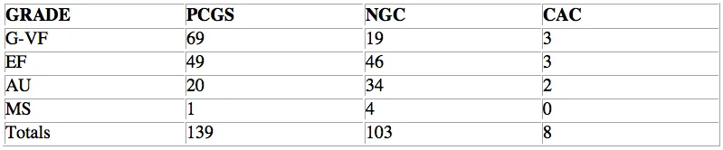 These figures are reasonably accurate (for PCGS graded coins) but are a bit low for choice, original pieces with good eye appeal.