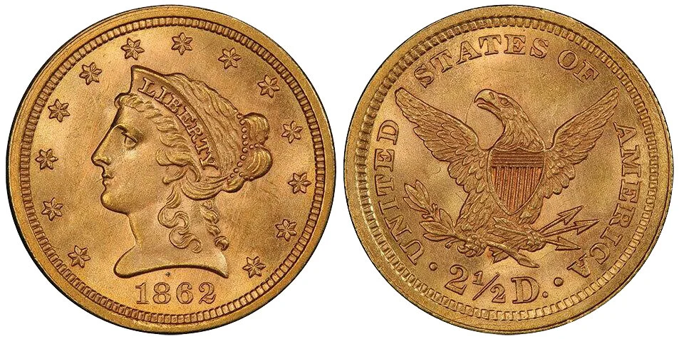 1862 $2.50 PCGS MS64+ CAC, Big Mo Collection