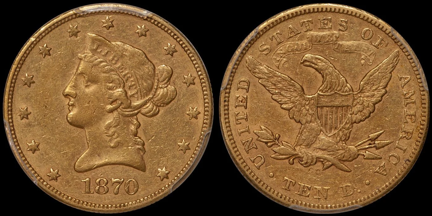 1870-CC $10.00 PCGS AU50 CAC, from the DWN archives
