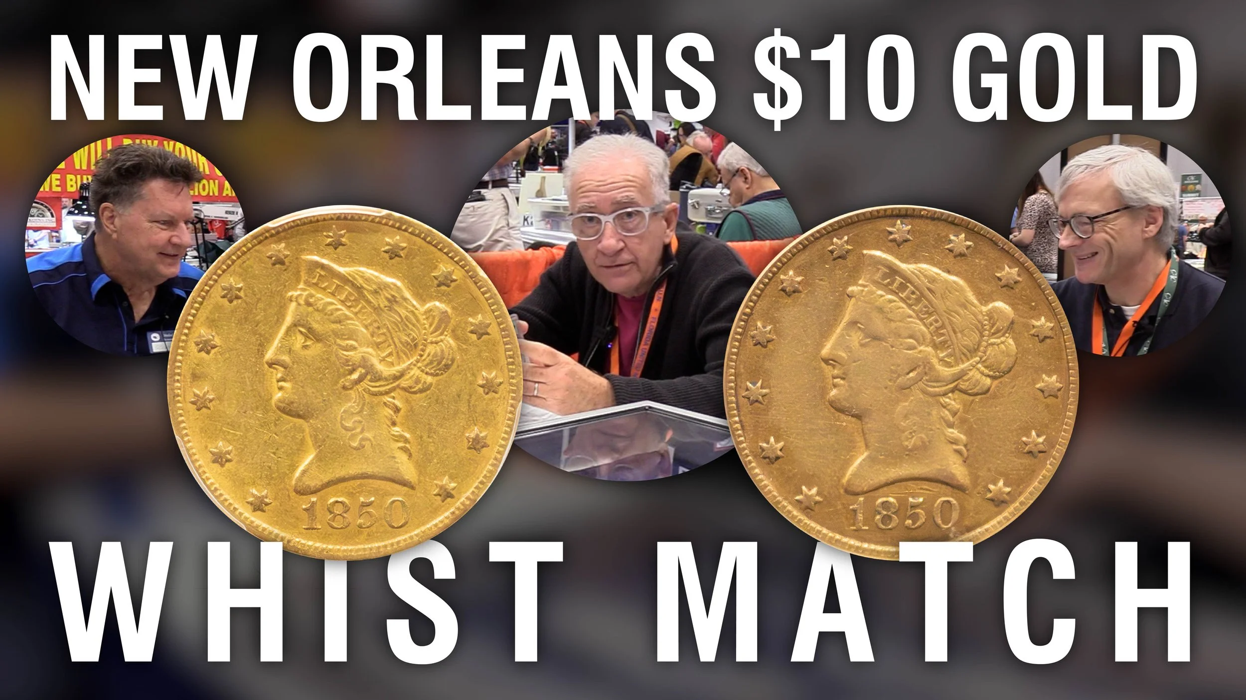 Len Augsburger and Stephen Petty play a "whist" match, comparing their New Orleans ten-dollar gold piece sets. Doug Winter acts as the arbiter and offers opinions on individual coins as well as the overall series in general. This event took place at the Florida United Numismatists convention in Orlando, FL on January 9, 2026.
